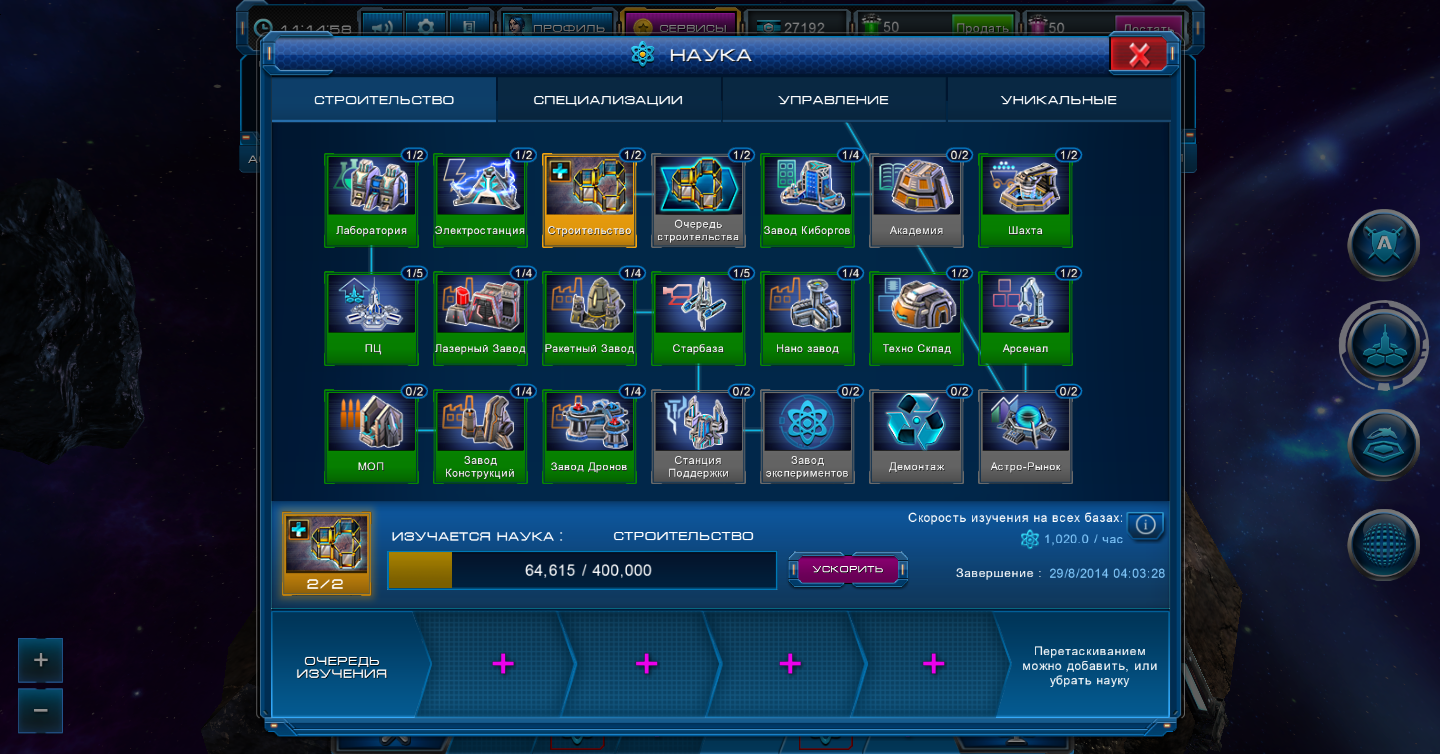 Ясно. То есть исследования / застройка / астрорынок будут доступны.