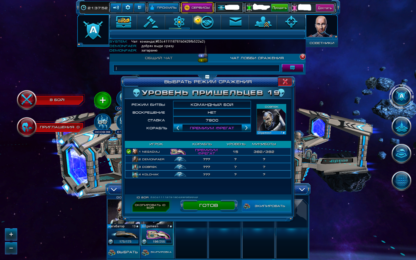 у меня было с собой востоновление хп но я не стал его применять так как я знал что эта крыса будет меня таранить и я хотел записать видео про его крысиную игру.reynor писал(а):Глянул повтор игрока Добряк. Он был в бою на разломанном фрегате. Я хоть и новичок, но мне кажется в серьёзные бои с такими повреждениями не ходят, хотя могу и ошибаться. Так же в начале боя, курс направления был изменён на противоположный от алиенов. Чисто факты и мысли в слух.